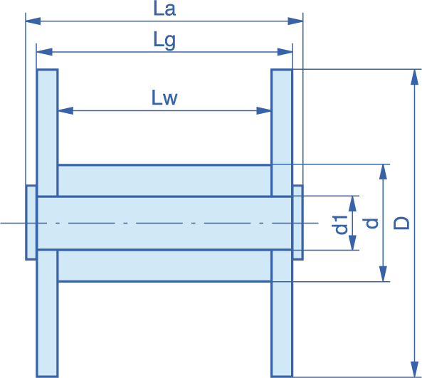 | Spulentyp | D [mm] | d [mm] | d1 [mm] | Lw [mm] | Lg/La [mm] | Inhalt [kg] |